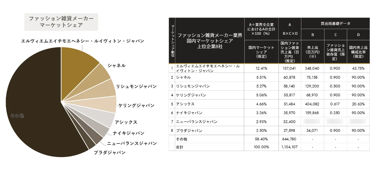 ・ファッション雑貨メーカーのAIによる推定マーケットシェアランキング