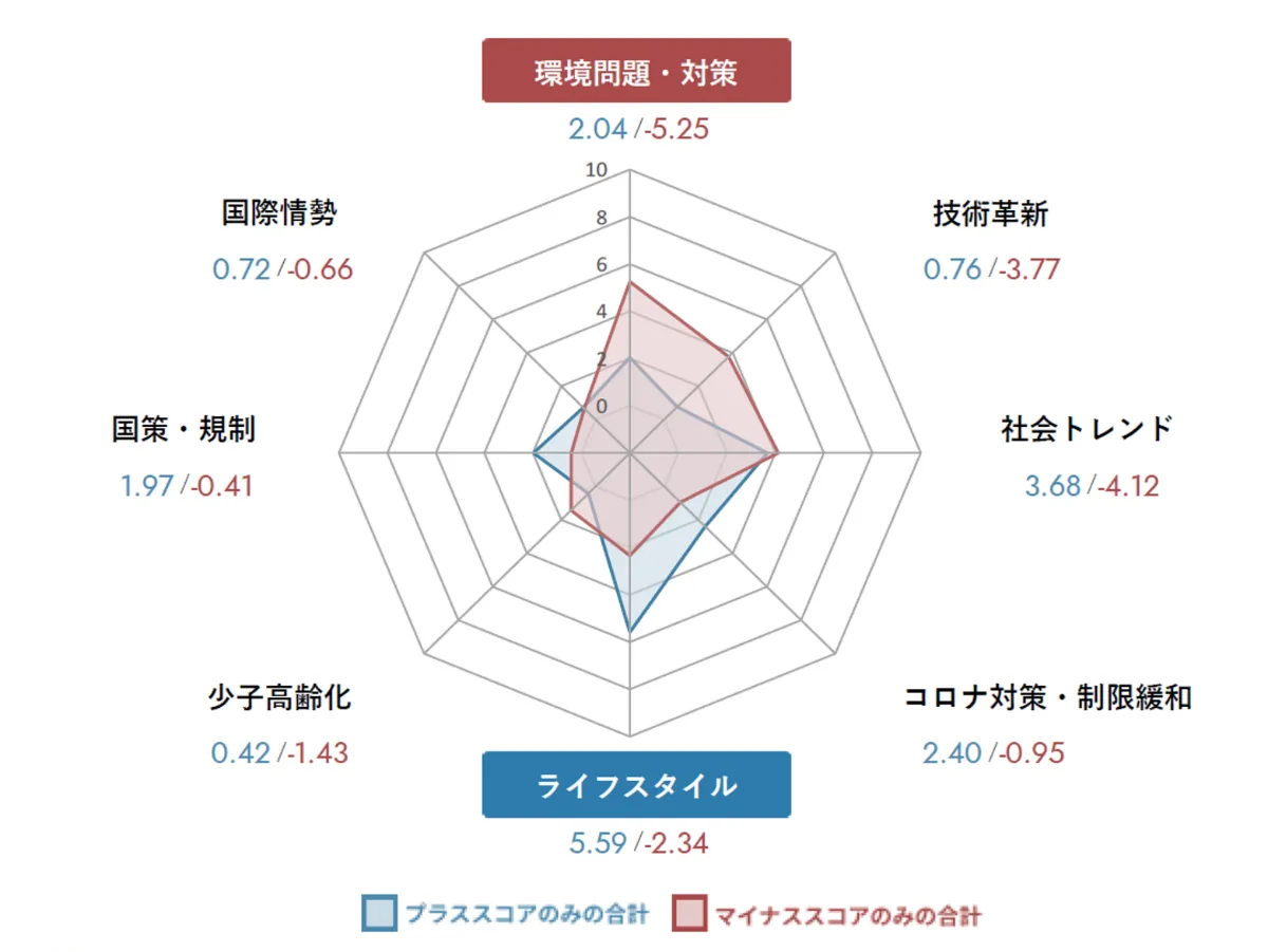 ■プラス要因はライフスタイル、マイナス要因は環境問題・対策の影響が大きいと予測